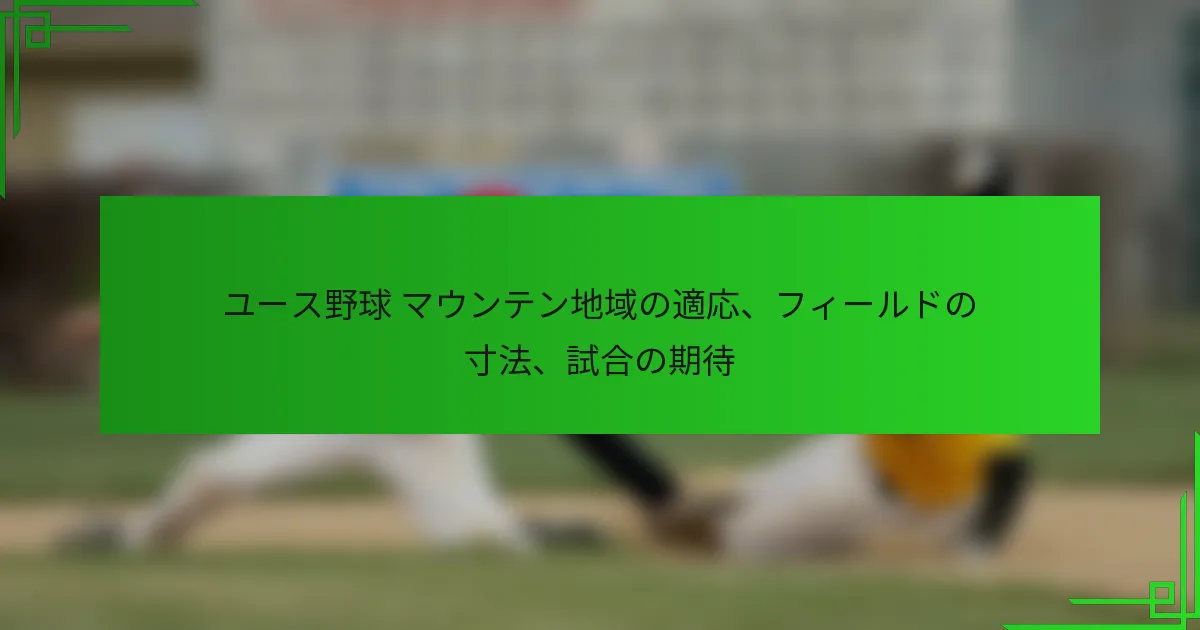 山岳地域の青少年野球は、高地の条件、独自の地形、地域社会の関与に対応するために特定の適応が必要です。これらの適応は、選手のパフォーマンス、安全性、地域リーグへの参加を向上させます。