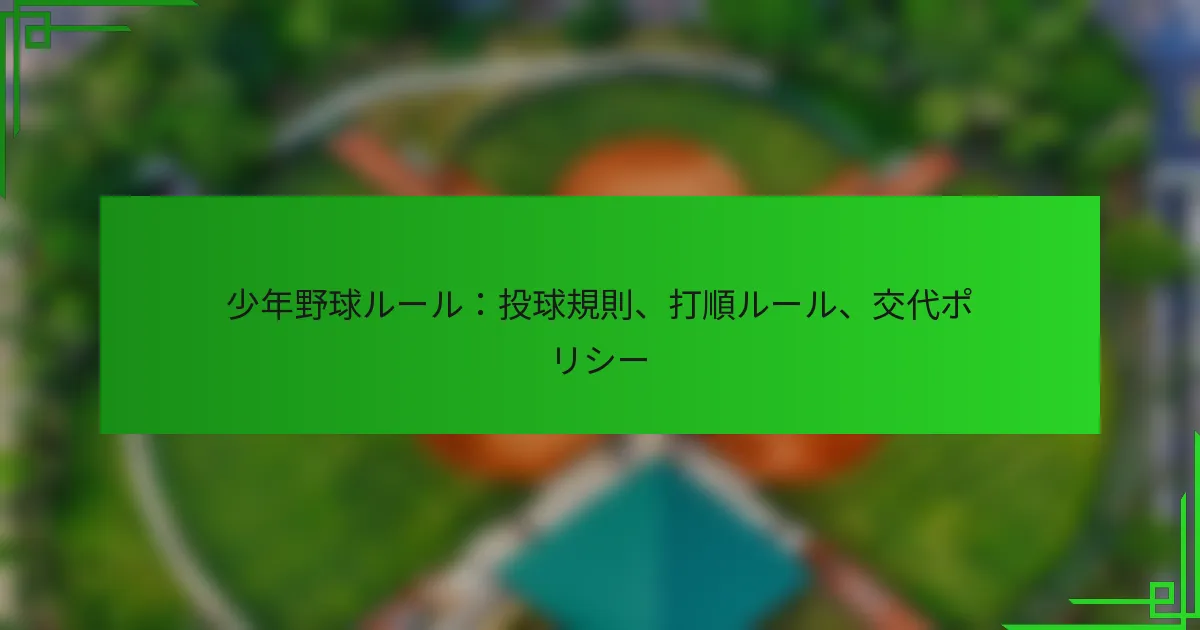 少年野球ルール:投球規則、打順ルール、交代ポリシー