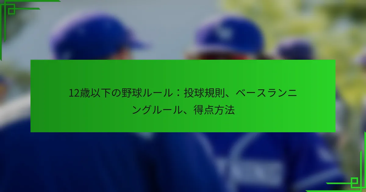 12歳以下の野球の得点ルールは、若い選手や年上の選手のルールと主にベースランニングやピッチングの規則において異なります。例えば、若い選手はベースランニングに関してより緩やかなルールが適用されることがあり、年上の選手はより厳しいピッチング制限に直面することがあります。